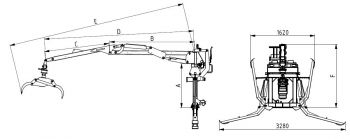 Crane GD 4500T is our biggest and strongest crane. It's equiped with 2nd extension boom (80 cm), 2 steering cylinders and stronger lifting cylinders. Crane has a three point hitching system and preparation for mounting on a trailer. When it's used on a tractor, we recommend a tractor with at least 80 hp. Control valve is professional forestry valve 4/8.
