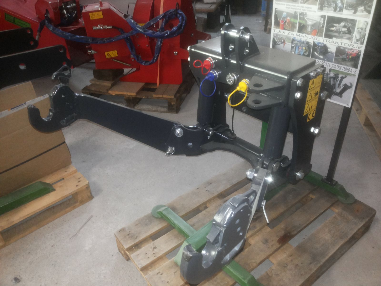 Sprednja hidravlika 2. kategorije. Izdelana je iz drobnozrnatega jekla. Pri izdelavi so upoštevani standardi SIST ISO 730. Primerna je za pritrditev na ploščo snežnega pluga ( DIN 76060A ali DIN 76060B)